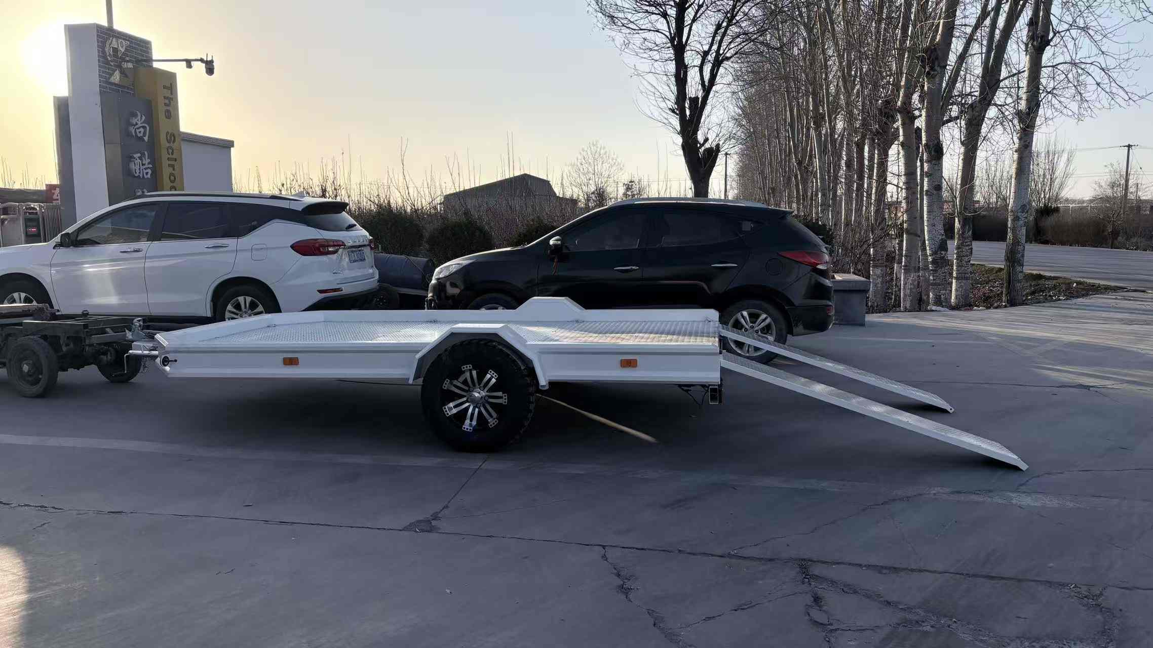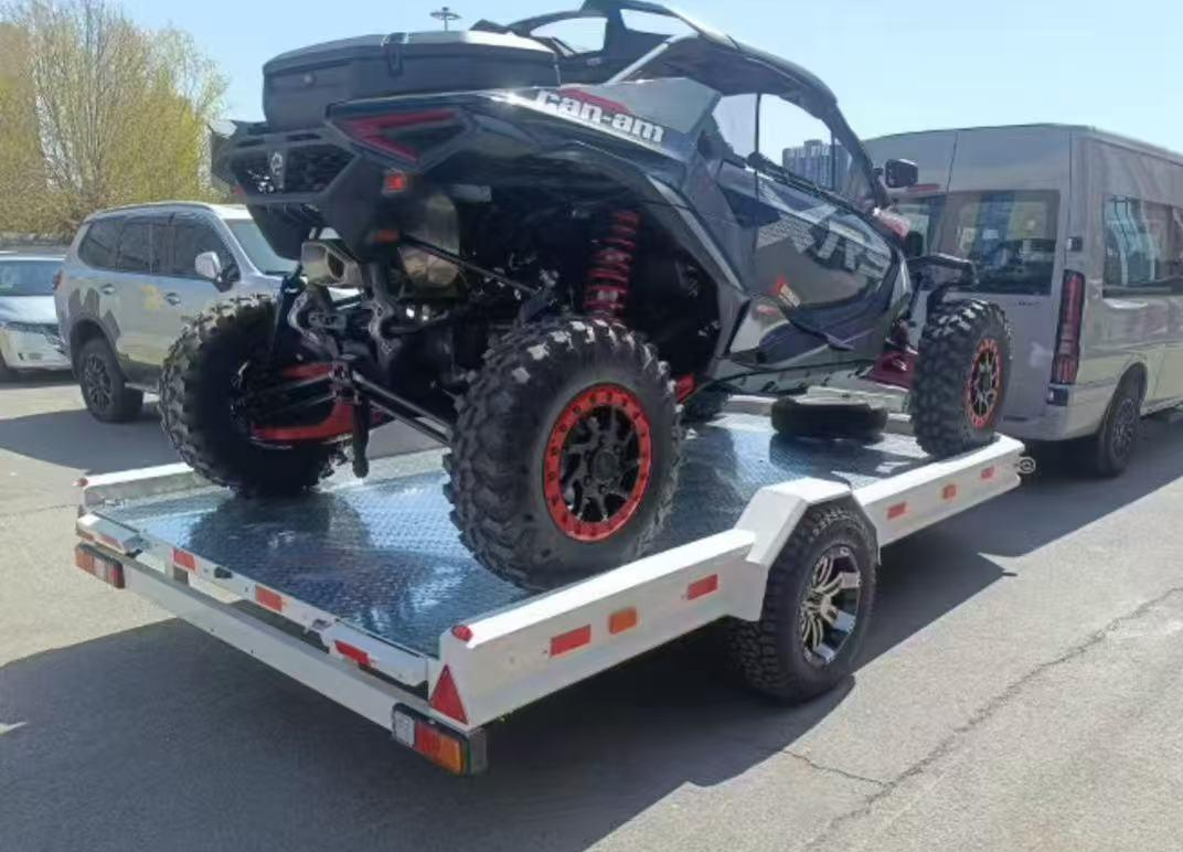 Палубата со рамно лежиште е изработена од анти-лизгачка алуминиумска плоча (или издржлива челична плоча), која нуди површина со висока влечна површина за да спречи поместување на товарот за време на транспортот. Опцијата за алуминиумска палуба е лесна и отпорна на корозија, идеална за надворешна употреба во влажни или крајбрежни средини, додека челичната палуба обезбедува максимална издржливост за тешки, абразивни товари. Дизајнот со низок профил и интегрираните рампи го прават полнењето на ATV, UTV и мала опрема брзо и без напор.