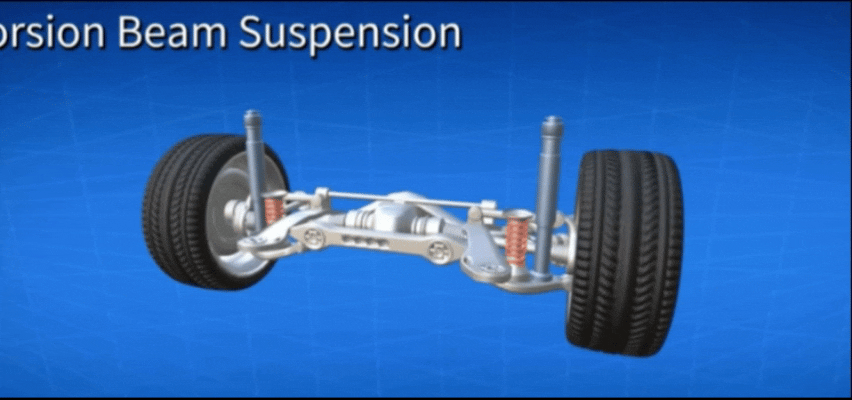 Се одликува со гумени кабли за куќиште од метална цевка; тркалата се поврзуваат преку замавнувачки краци со гумениот склоп. Независното движење на тркалата е овозможено преку торзиона деформација на гумата, при што секое тркало работи независно.